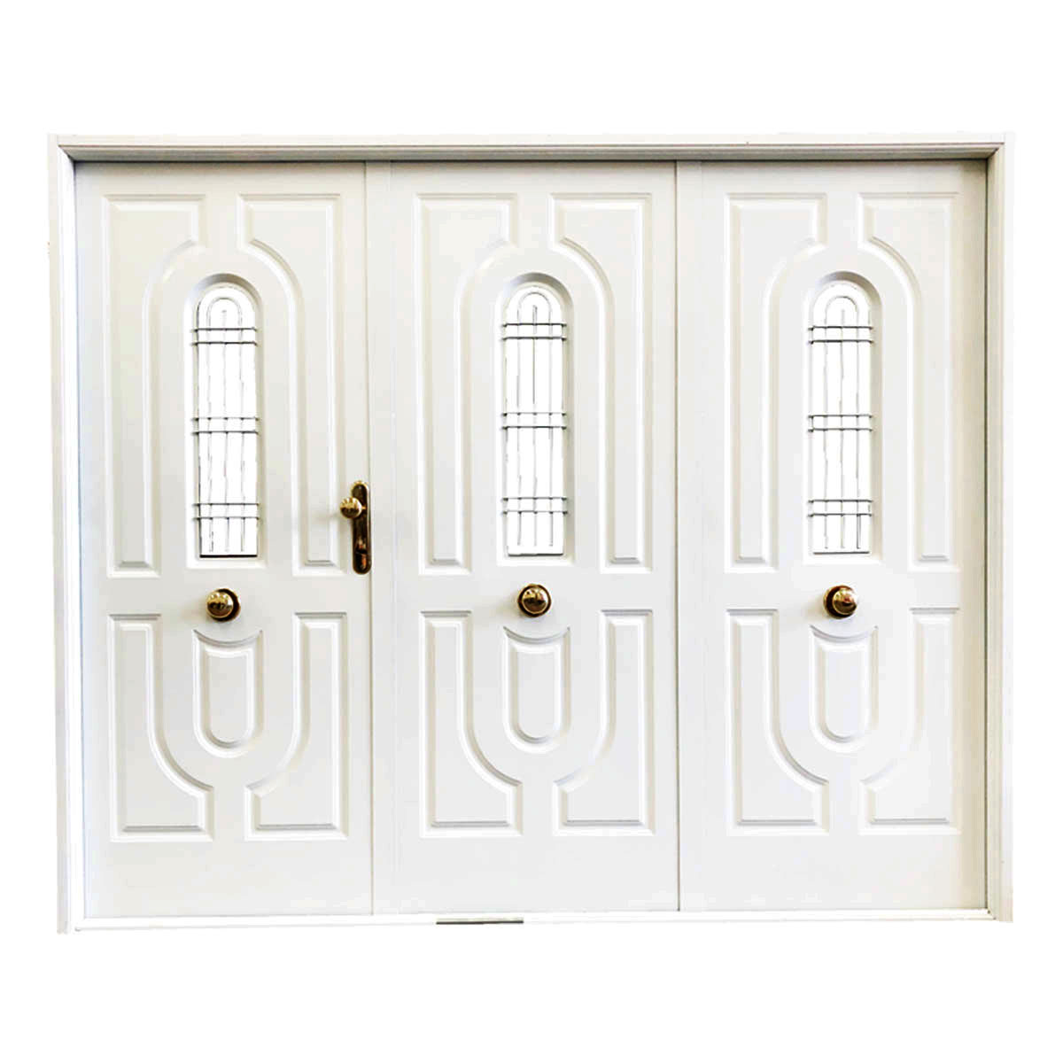 - Puerta de doble hoja con postigo central de abrir standard, inyectada con poliuretano expandido